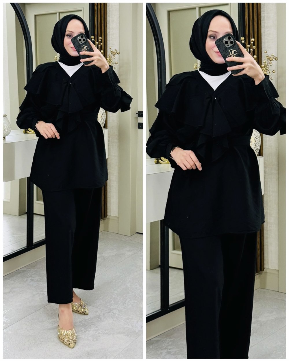 Alya fırfırlı takım Siyah