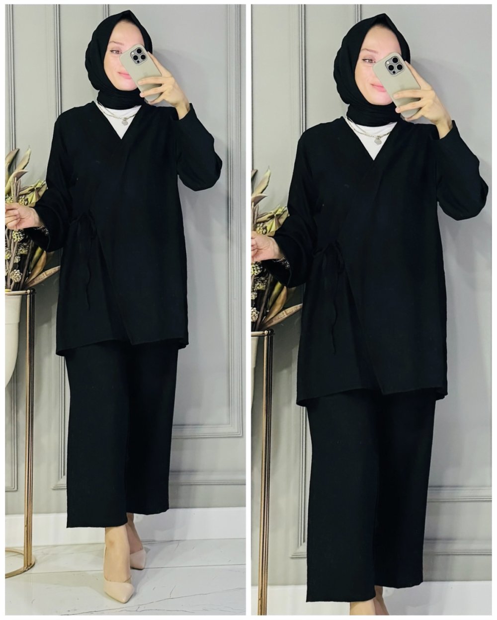 Aybike bağlamalı çilek kumaş takım Siyah