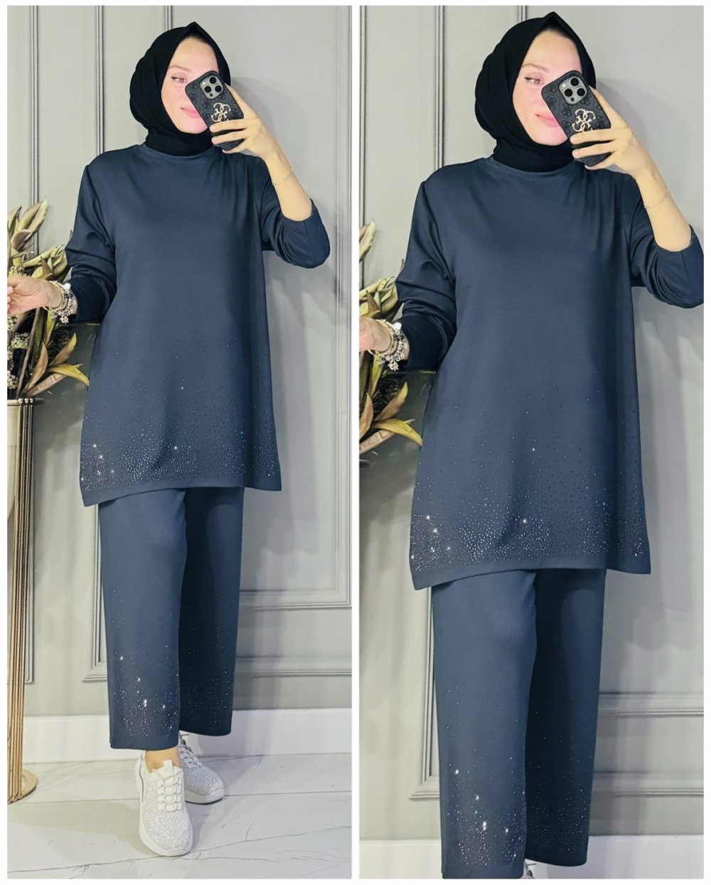 Sanem paça ve ön taşlı oysho takım Antrasit