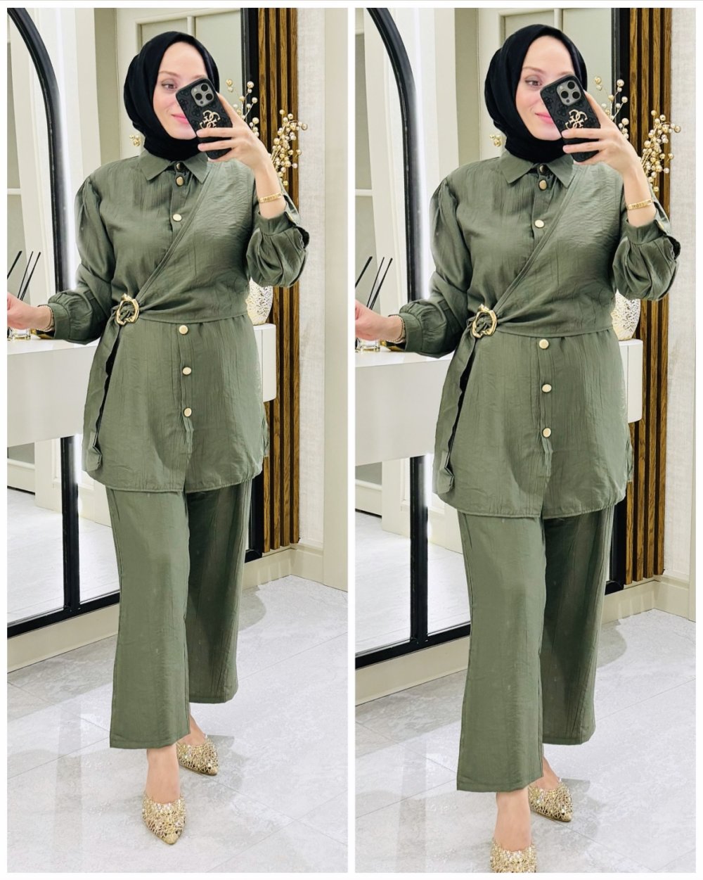 Hilay çilek kumaş takım Haki