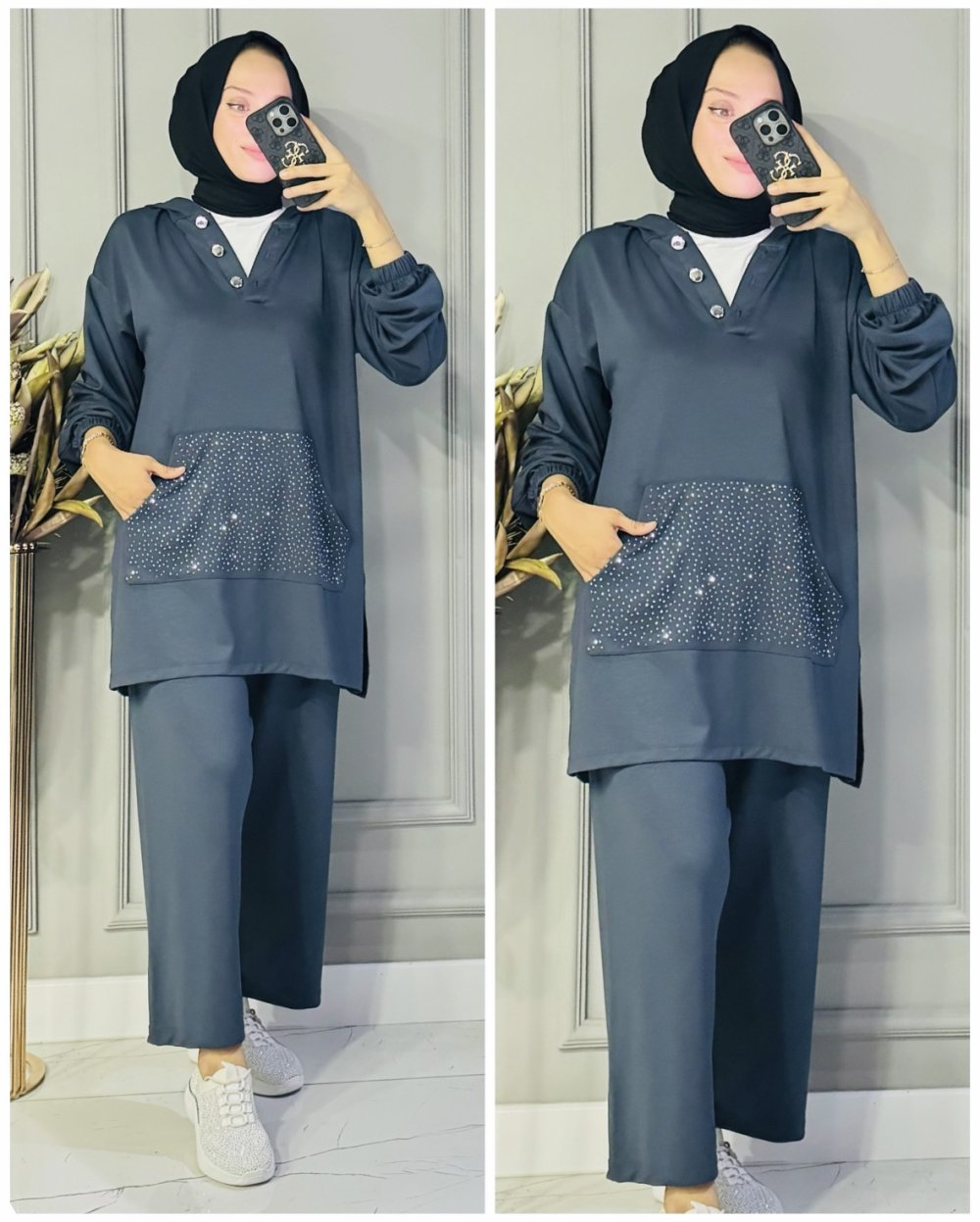 Lale taşlı oysho kumaş takım Antrasit