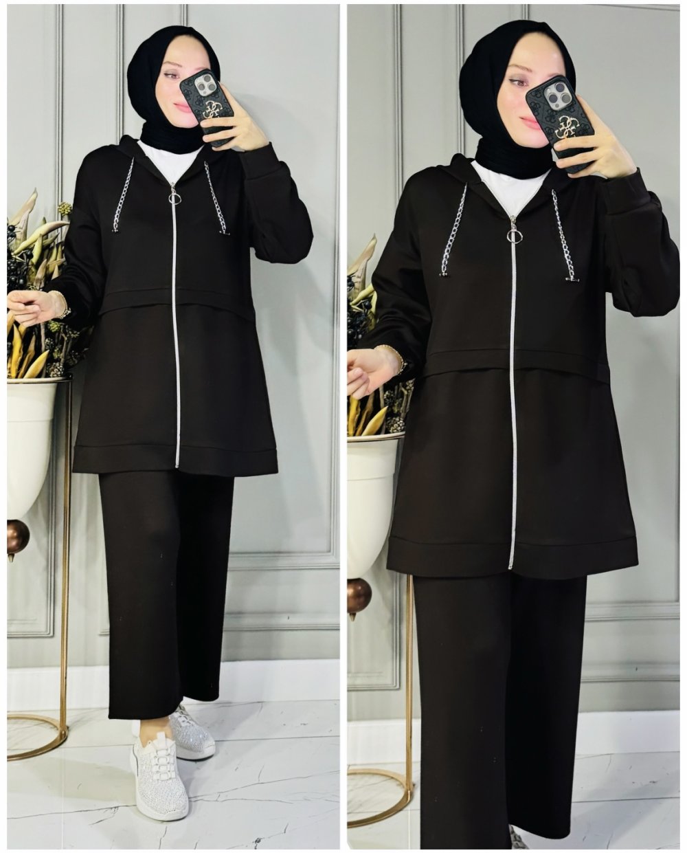 Leyla zincirli kapşonlu oysho takım Acı Kahve