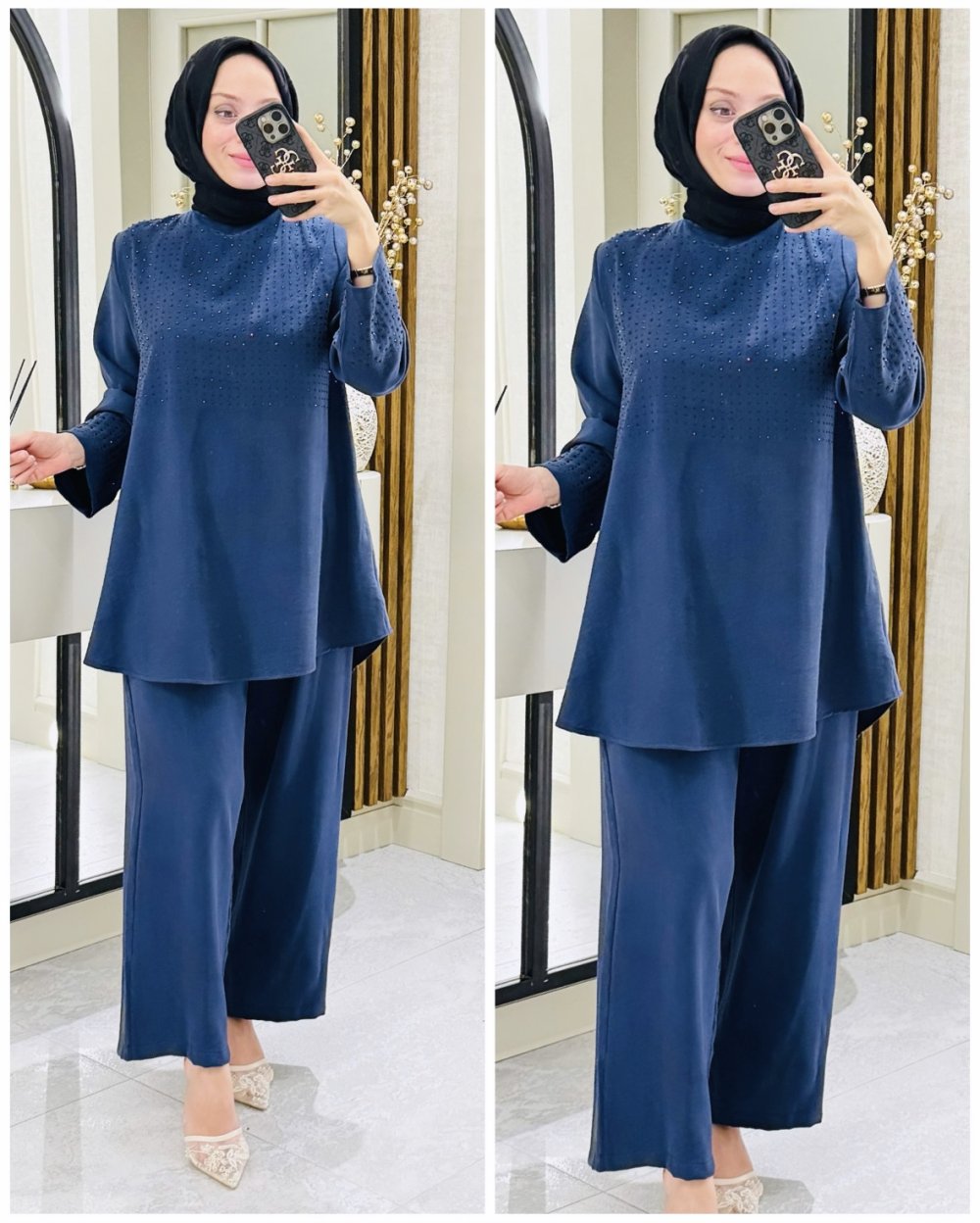 Nurbanu taşlı takım Lacivert