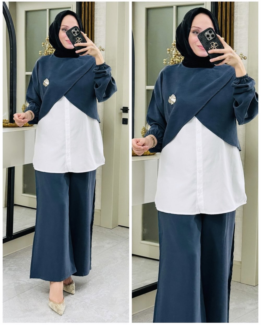 •gömlek sıfır koldur pantolon bol paça ceplidir
