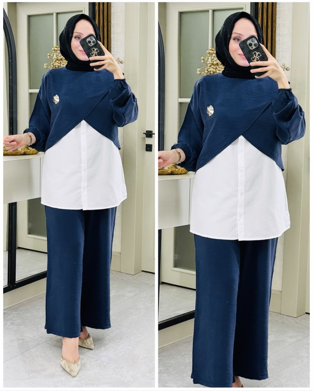 Sude broşlu üçlü takım Lacivert
