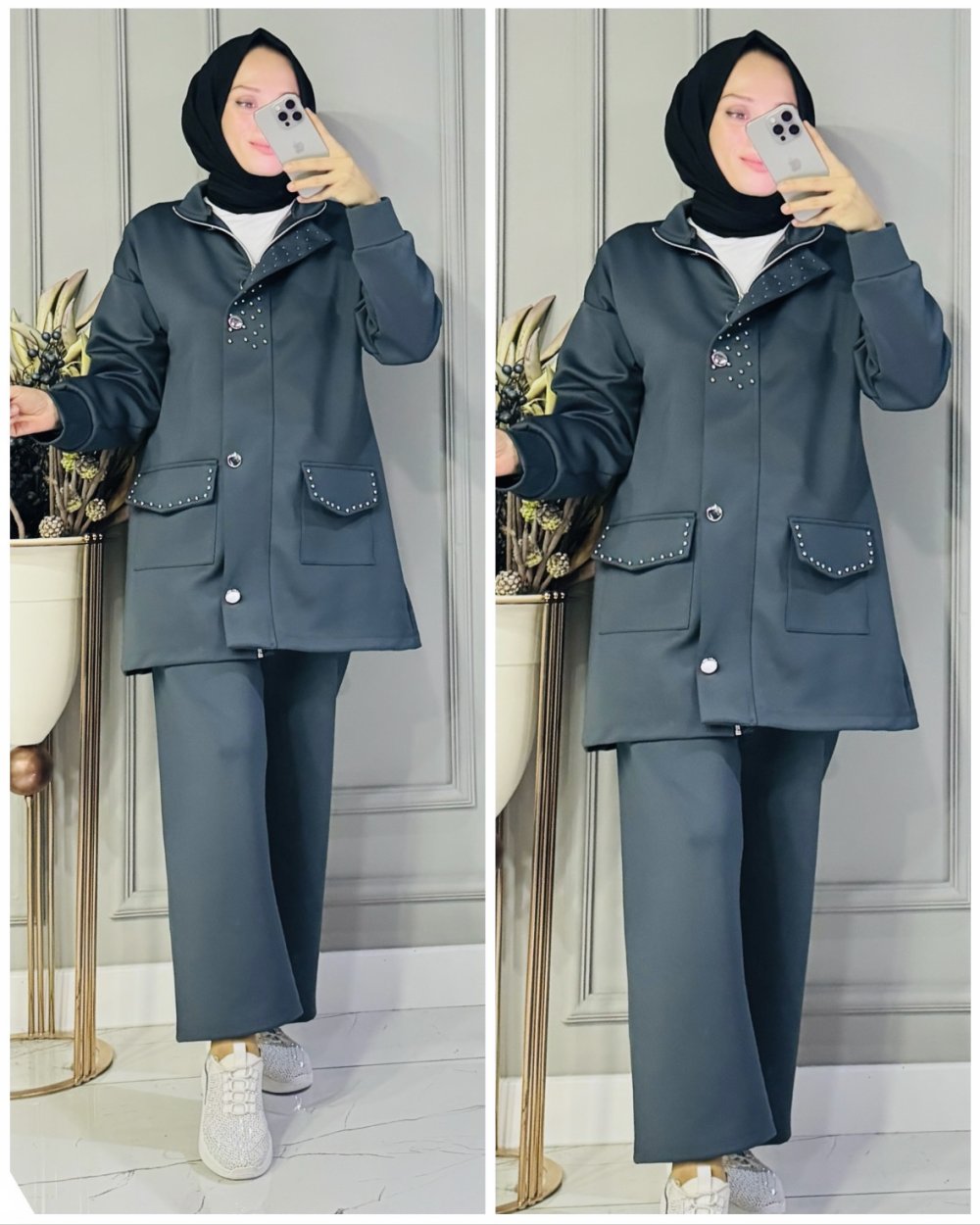 Tam fermuar detaylıdır